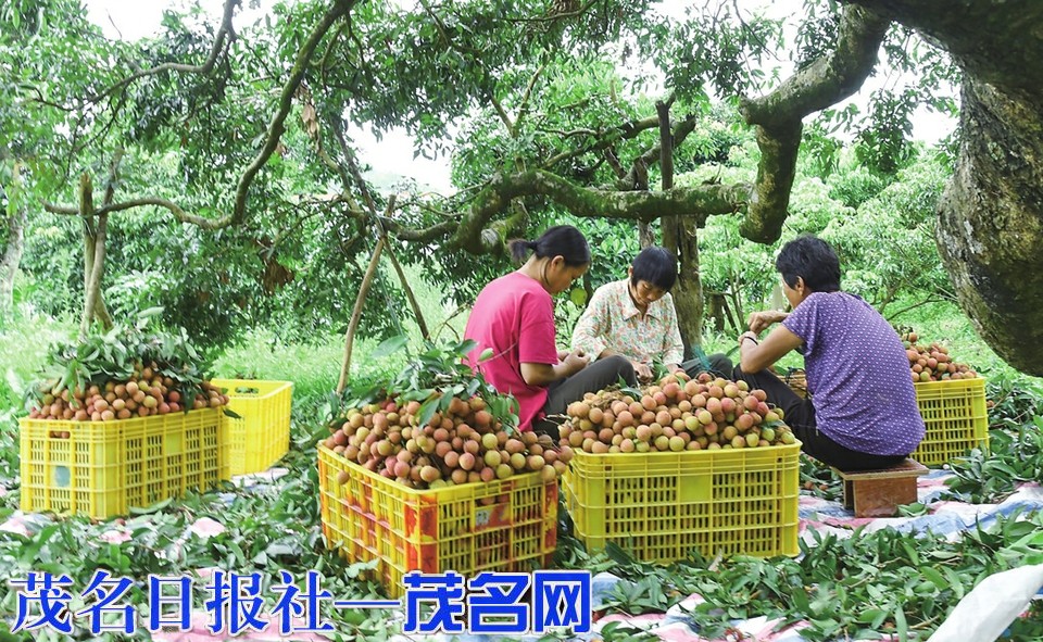 今年是荔枝小年,荔枝挂果普遍较少,但高州市大井镇塘头村的近百棵进奉老荔枝树却挂果累累,果压枝头,喜获丰收。昨天,塘头村的进奉荔枝开摘,记者在塘头村的荔枝林里看到,村民利用长梯爬上荔枝树,一筐筐成熟的荔枝从树上采摘下来,分拣、整理,果农再将荔枝挑到设在荔枝林附近的收购点过称、销售。据了解,当天进奉荔枝的收购价为每公斤6.6元。茂名日报社全媒体记者黄信涛摄