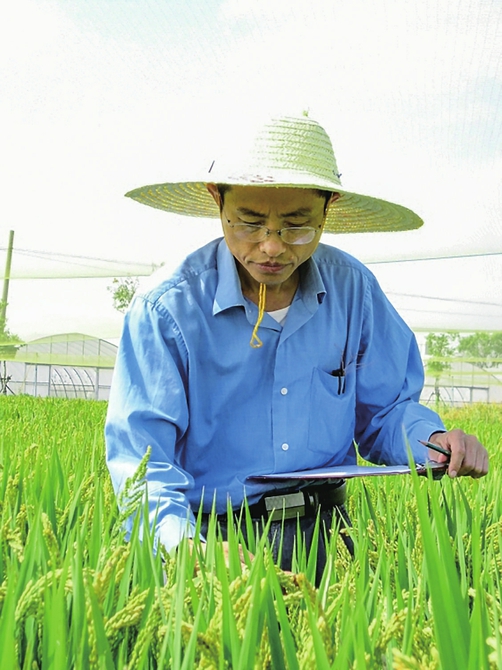 林鸿宣院士在田间观察水稻性状表型。(中科院分子植物科学卓越创新中心供图)