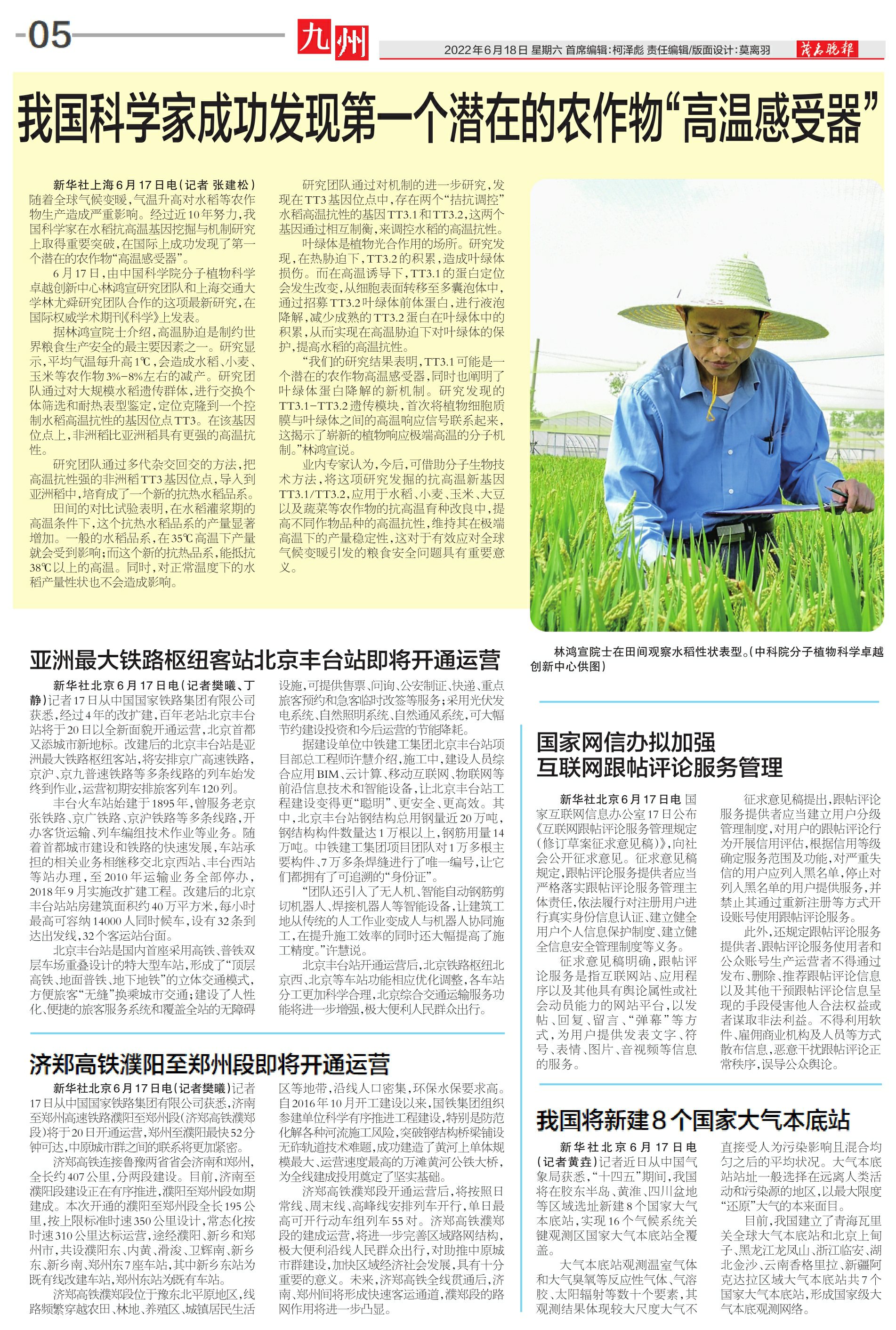 我国科学家成功发现第一个潜在的农作物“高温感受器”