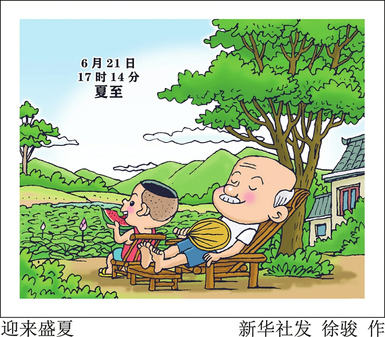 新华社天津6月19日电(记者周润健)“黄梅时节家家雨,青草池塘处处蛙。”北京时间6月21日17时14分将迎来夏至节气,标志着炎热的盛夏来临,意味着高温的炙烤开始。