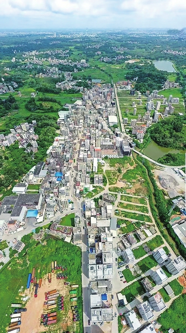 站高遥遥远眺,远处的建筑物鳞次栉比,纵横的街道上车辆穿梭,在众人眼前的是一幅“天蓝、路阔、树绿、村净”的画卷,村庄有规划、农业有特色、村民有公心,村庄的景色愈发秀丽迷人……