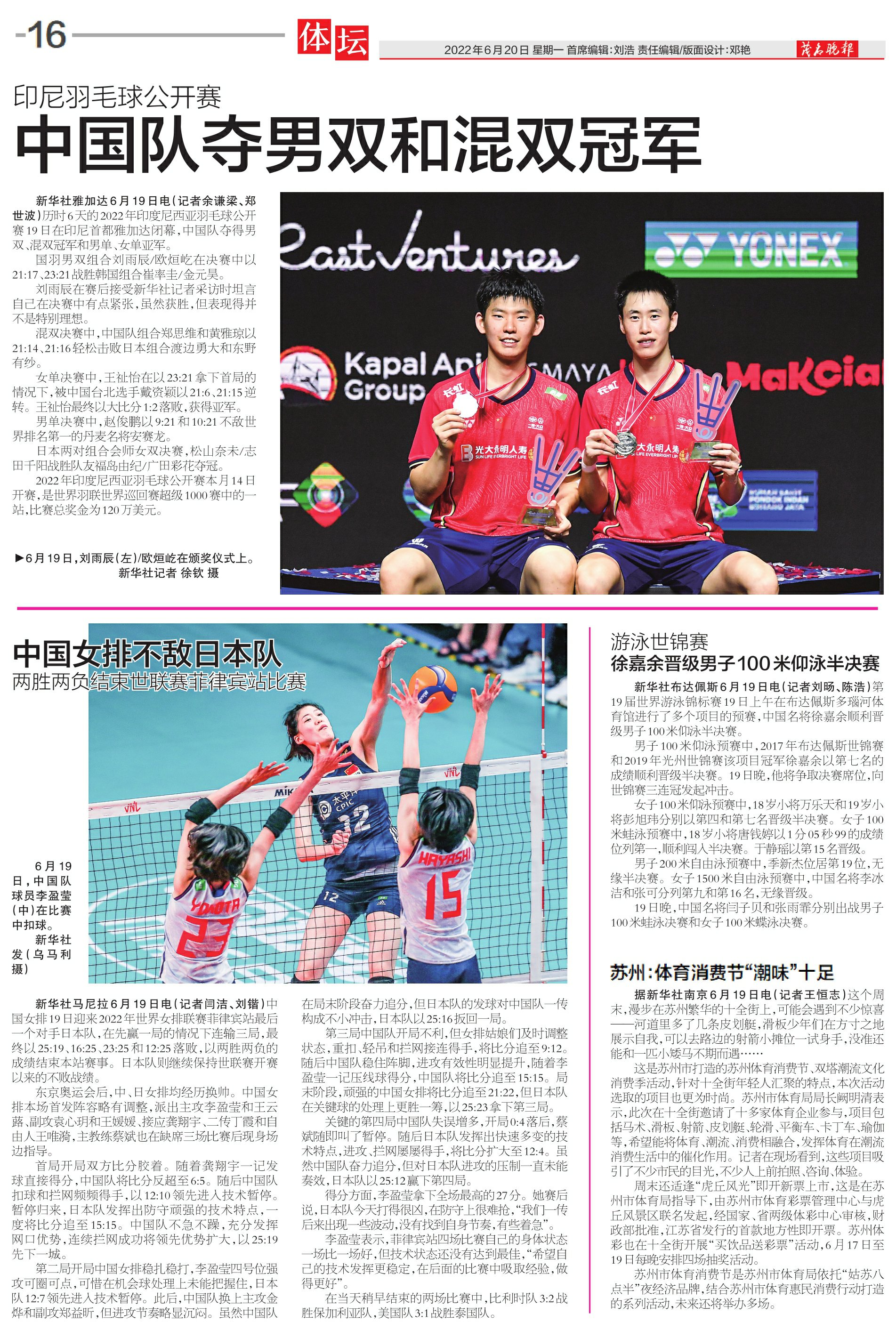 中国队夺男双和混双冠军