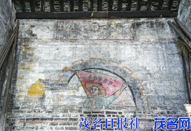 从墙面壁画看,这座大屋在上世纪“公社”时期,是作为“林垌大队”办公场所用的。记者观察到,厅墙上仍留有“平塘公社林垌大队”的相关痕迹:“粮食管理委元会”(元该是“员”)。“争到全县第一”的字眼仍清晰。在上厅的正中有一幅墙画是一个年青人扛着一面红旗,红旗上有“争取全县第一”的标语。标语上有“无虫”“无病疫”等7个明确工作目标,可见当时林垌人目标明确,要在清除虫害疾病方面工作中要争取全县第一名。