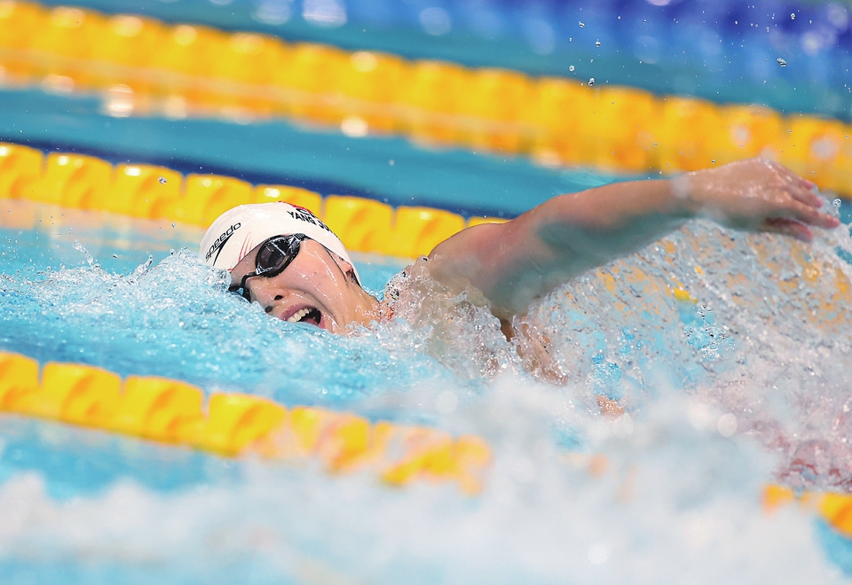 6月20日,杨浚瑄在比赛中。 当日,在匈牙利布达佩斯举行的2022年世界游泳锦标赛女子200米自由泳半决赛中,中国选手杨浚瑄晋级决赛。新华社记者李颖摄
