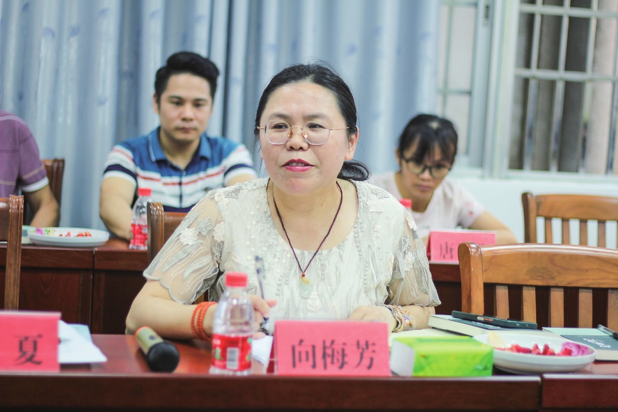 向梅芳是信宜市文联兼职副主席、文化馆副研究馆员,国家二级作家,省作家协会会员,省文学院签约作家,鲁迅文学院广东作家班学员。她热情分享了作品创作情况。《向家湾》创作从最早期的酝酿开始前后历时近十年,讲述一个农民家族五代人的奋斗坎坷、爱恨悲欢和人生传奇。小说的叙事时间从1920年到2020年,地域跨度从粤西南到湘西北。整部小说通过一个农民家族的百年兴衰折射中国百年时代变迁和中国乡土文化传承的历史命运。目前,《向家湾》正在500多家图书馆上架。