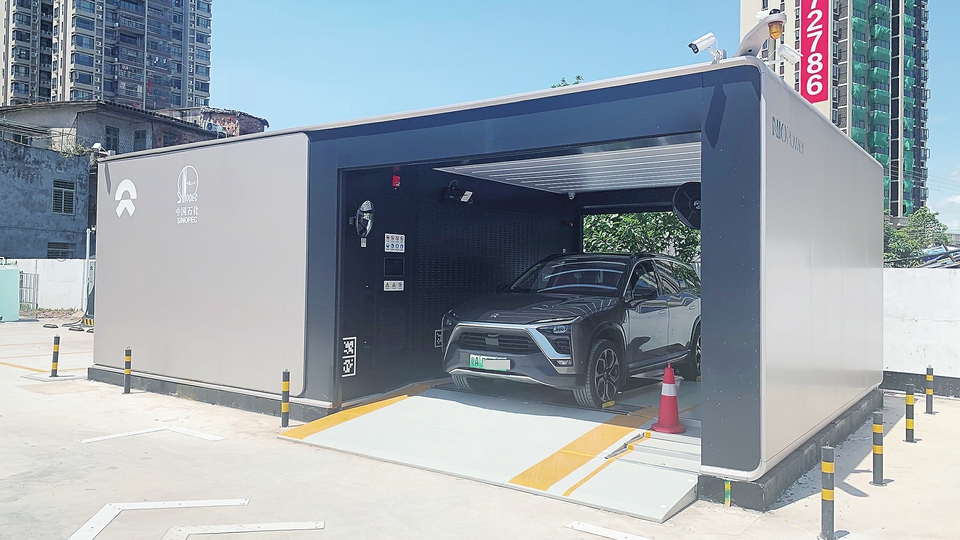 新能源车主在体验智能换电服务。茂名晚报通讯员谢汝帮摄