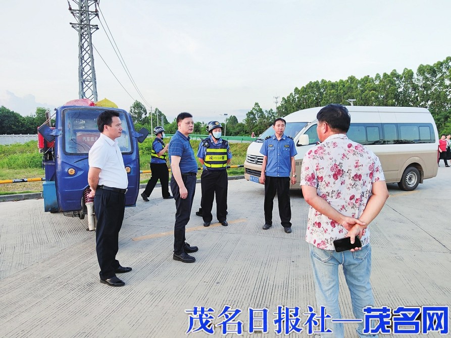 执法人员教育劝离占道经营者。茂名晚报记者刘锋兰摄