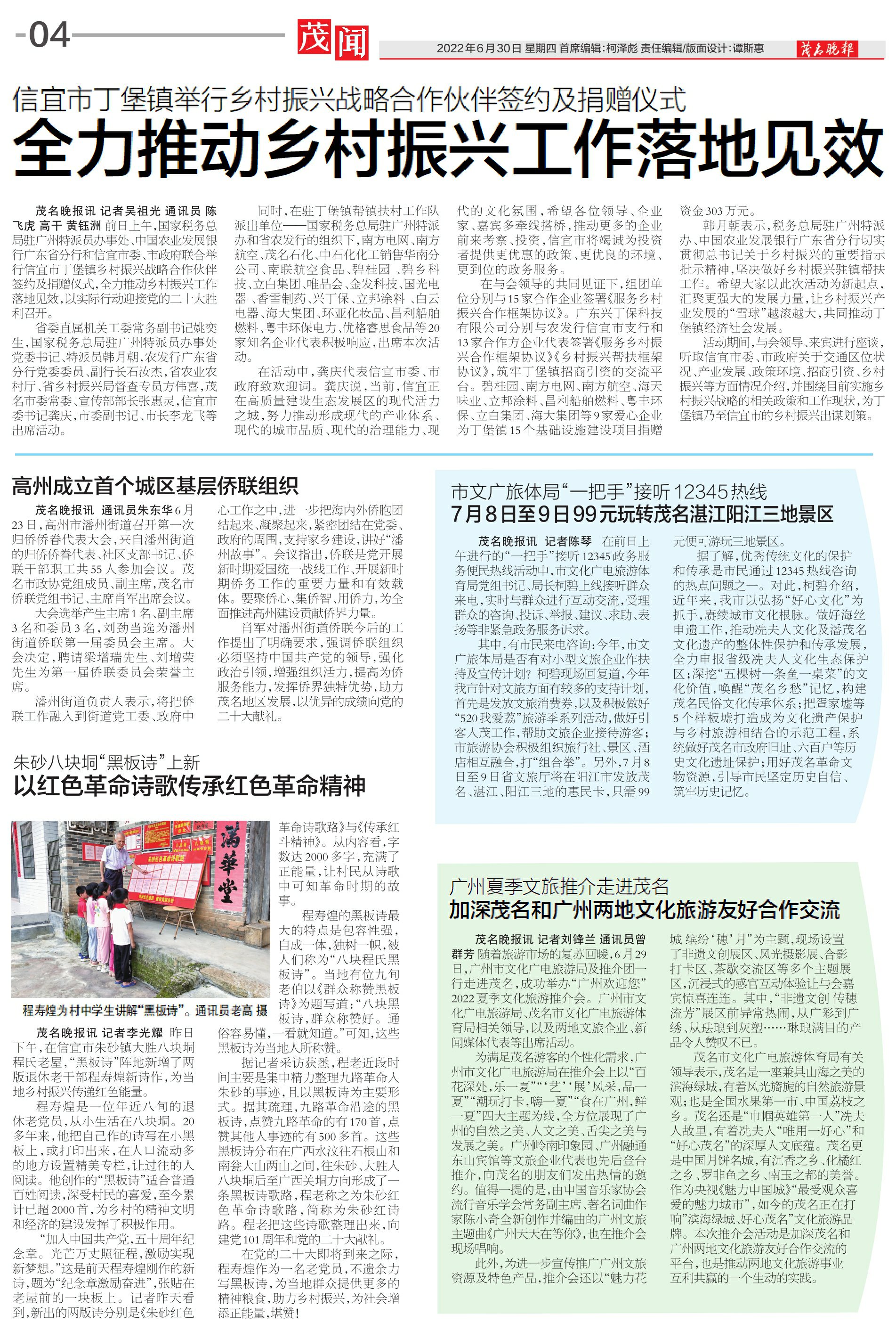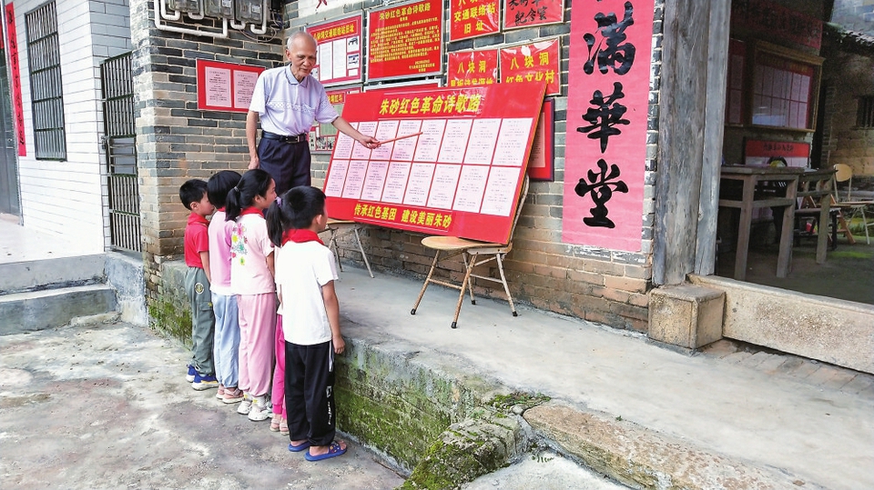 茂名晚报讯记者李光耀 昨日下午,在信宜市朱砂镇大胜八块垌程氏老屋,“黑板诗”阵地新增了两版退休老干部程寿煌新诗作,为当地乡村振兴传递红色能量。