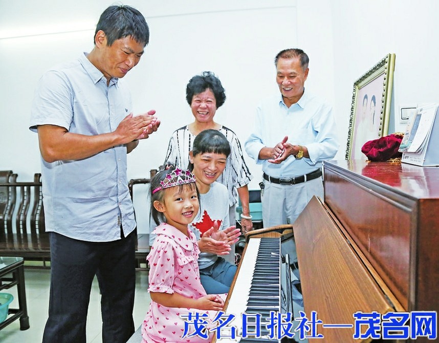 小女儿虽然年龄尚小,但礼貌乖巧、热情待人,吃东西时会惦记爷爷奶奶,会弹琴跳舞逗家人开心。采访的那个周末,在全家人的捧场下,小女孩现场弹了一曲《小星星》,跳了一支欢快的舞,场面欢乐。