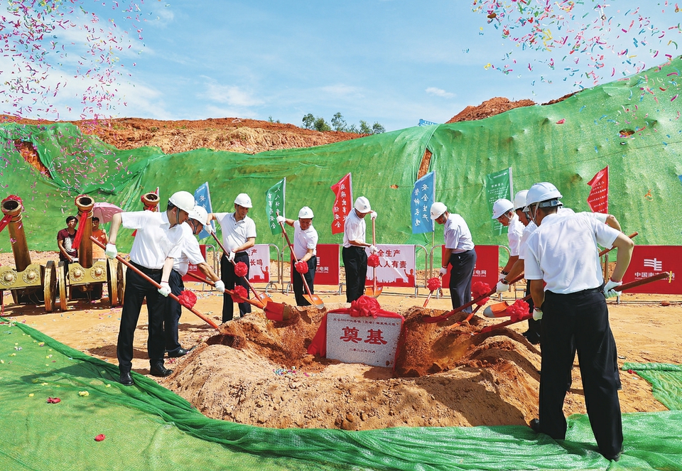 在水东湾新城管委会、南方电网广东茂名供电局以及施工单位的见证下,茂名220kV晏镜(茂港)输变电工程开工建设。 叶泽 摄