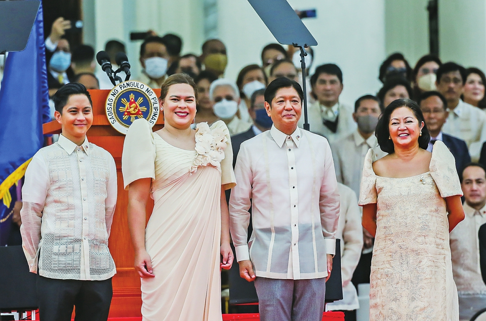 6月30日,费迪南德·罗慕尔德兹·马科斯(中右)在菲律宾首都马尼拉出席总统就职典礼。新华社发(乌马利摄)