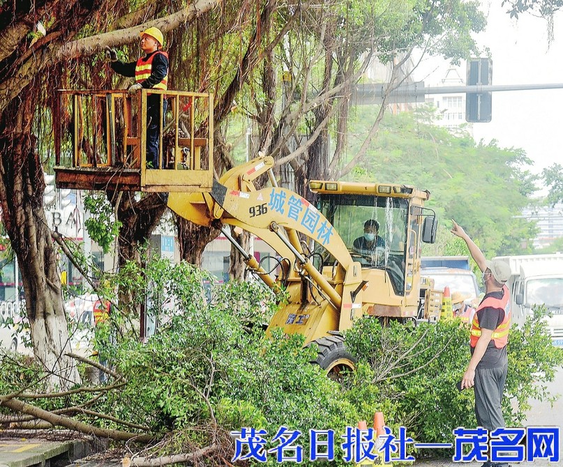 夏季是台风多发季节。日前,园林工人在市区迎宾二路对道路两旁的路树进行修剪,既提高了路树的抗风能力,又美化了市容环境。