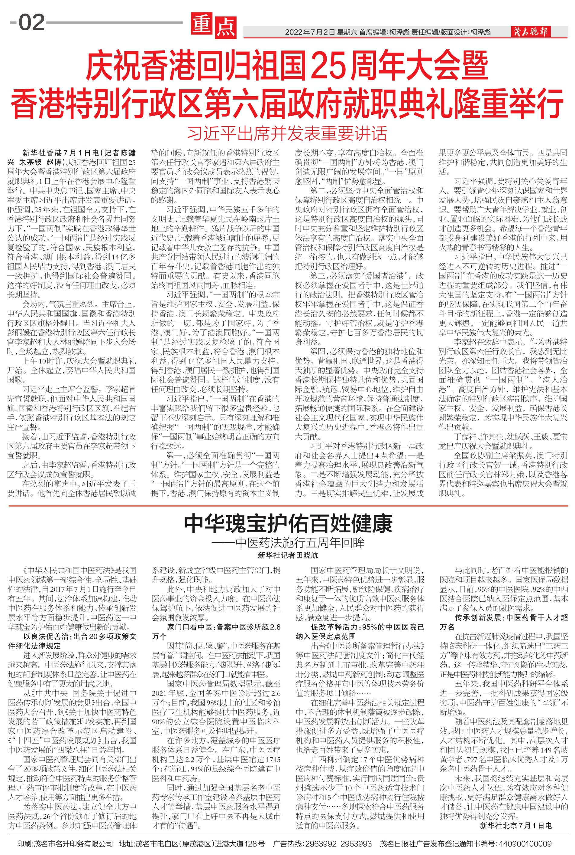 庆祝香港回归祖国25周年大会暨香港特别行政区第六届政府就职典礼隆重举行