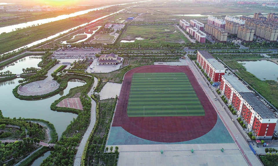 这是5月27日拍摄的河北省黄骅市春熙公园共享体育场(无人机照片)。 新华社记者骆学峰摄