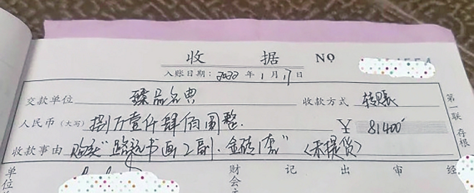 这是诈骗公司向老人售卖书画的收据。(西宁市公安局城西公安分局供图)