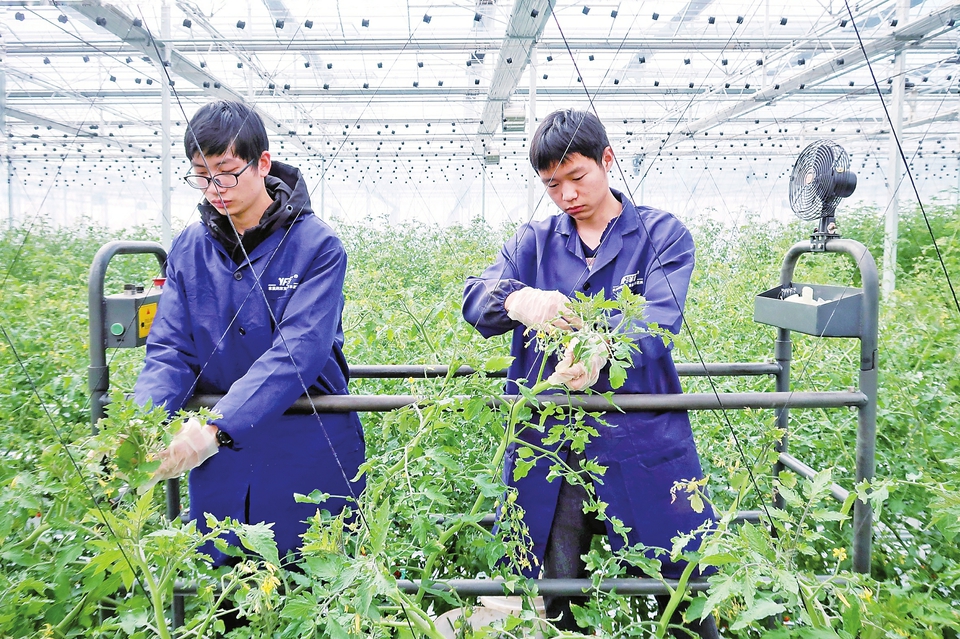 新华社“新华视点”记者2021年3月4日,浙江省寿昌县农业精品生态园的技术员在机器协助下为农作物绑蔓。新华社记者郑梦雨摄