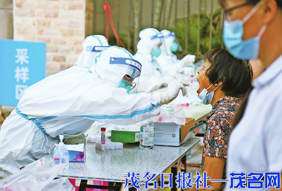 连日来,我市气温高企,茂南区各核酸采样点的医护人员身穿厚厚的防护服坚守岗位,冒着酷暑为市民采样。