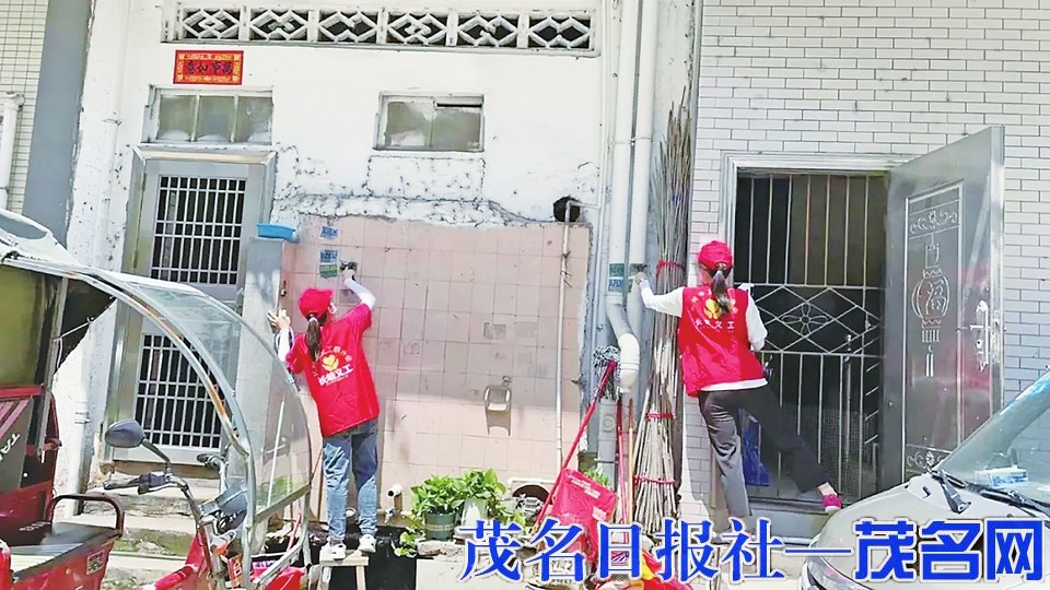 义工清洁环境助力创建文明镇。 茂名晚报通讯员李梅摄