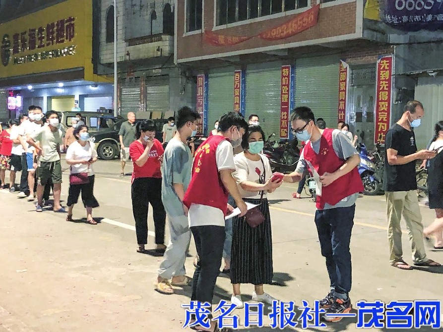 高州市人民医院110多人奔赴云潭,支援开展大规模核酸筛查工作。全镇27个党组织的党员闻“疫”而动,共有400多名党员主动申请加入志愿者队伍,帮助维持检测点现场秩序和协助处理其他后勤工作。