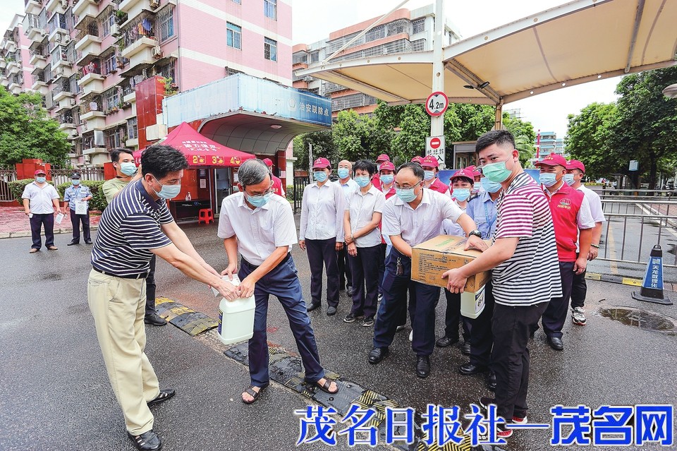 昨日上午,茂名职业技术学院校友会捐赠总价值约10万元的防疫物资,助力市区住宅小区疫情防控。 通讯员茂健摄