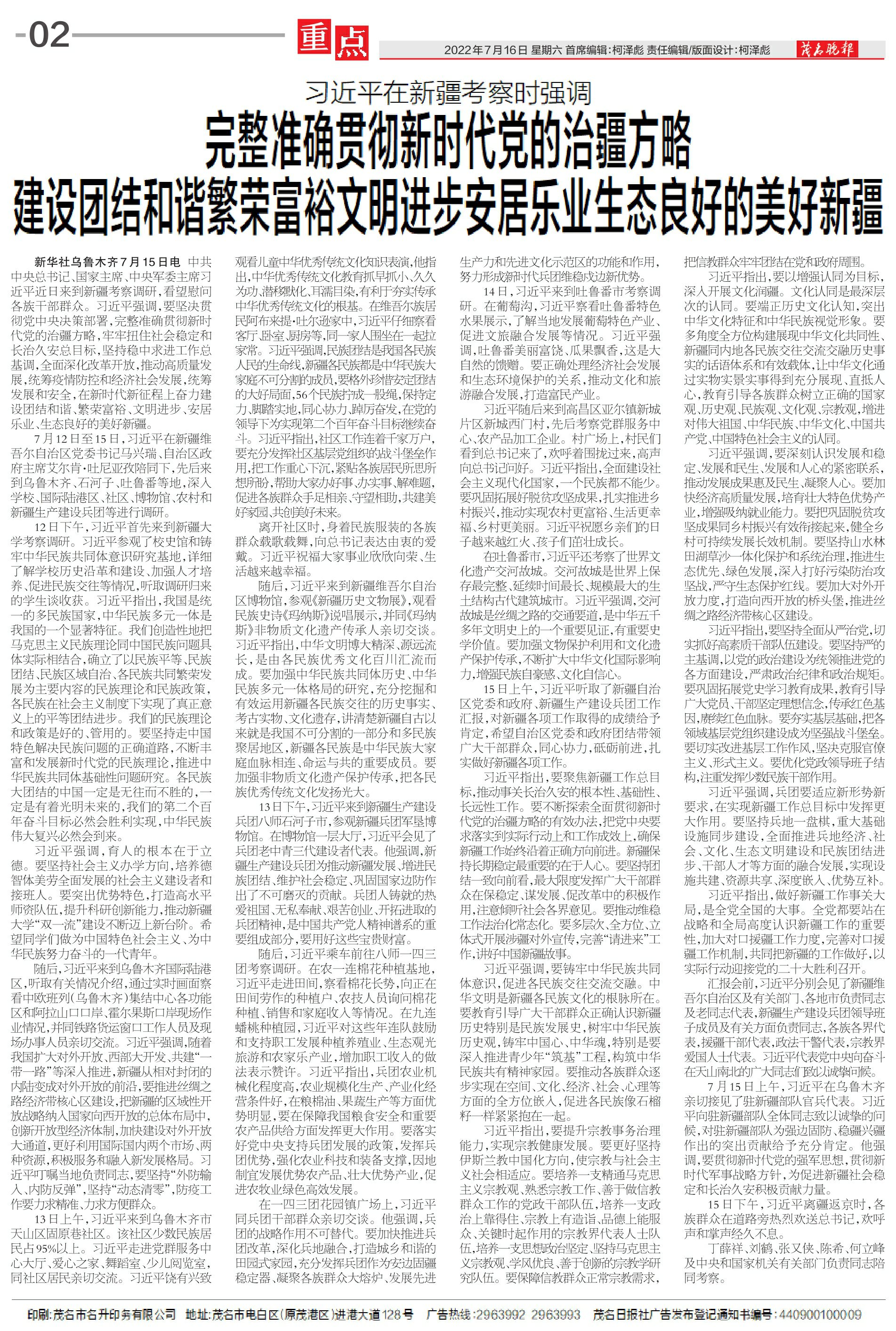 完整准确贯彻新时代党的治疆方略 建设团结和谐繁荣富裕文明进步安居乐业生态良好的美好新疆
