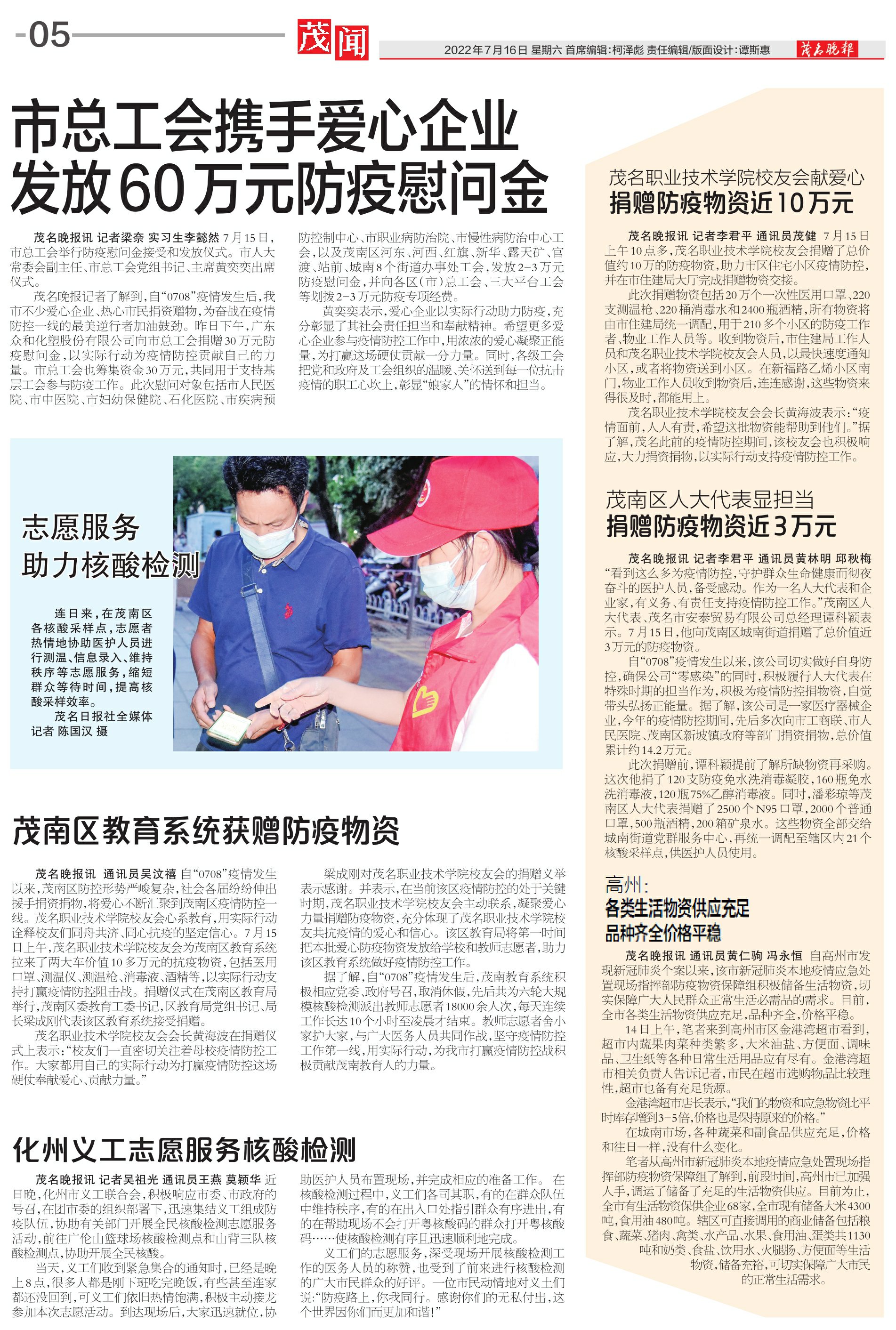 茂南区人大代表显担当捐赠防疫物资近3万元