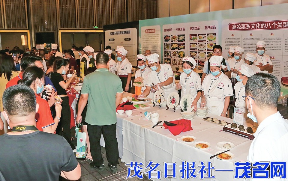 活动现场对品种丰富、鲜香美味的高凉菜进行了展示。高凉菜,有着鲜明的地域特色,原料新鲜,粗料精制,以清炖、水煮、白切、隔水蒸为主要做法,追求极致的原汁原味。我市具有发展和推广“高凉美食”得天独厚的天然优势。据了解,2021年,在广东省商务厅组织开展的“粤菜名店”和“粤菜名品”评选活动中,茂名有4家餐饮企业获评“粤菜名店”,10个菜品获评“粤菜名品”,为高凉菜的打造奠定了坚实的基础;市委宣传部指导开展的“茂名高凉菜地标美食暨食材基地遴选活动”遴选出了茂名“高凉菜”十大名菜、十大名小吃、十大名食府、十大名小吃店、十大名特产、十大名食材基地,初步勾画出一幅茂名“高凉菜”美食地图的轮廓。