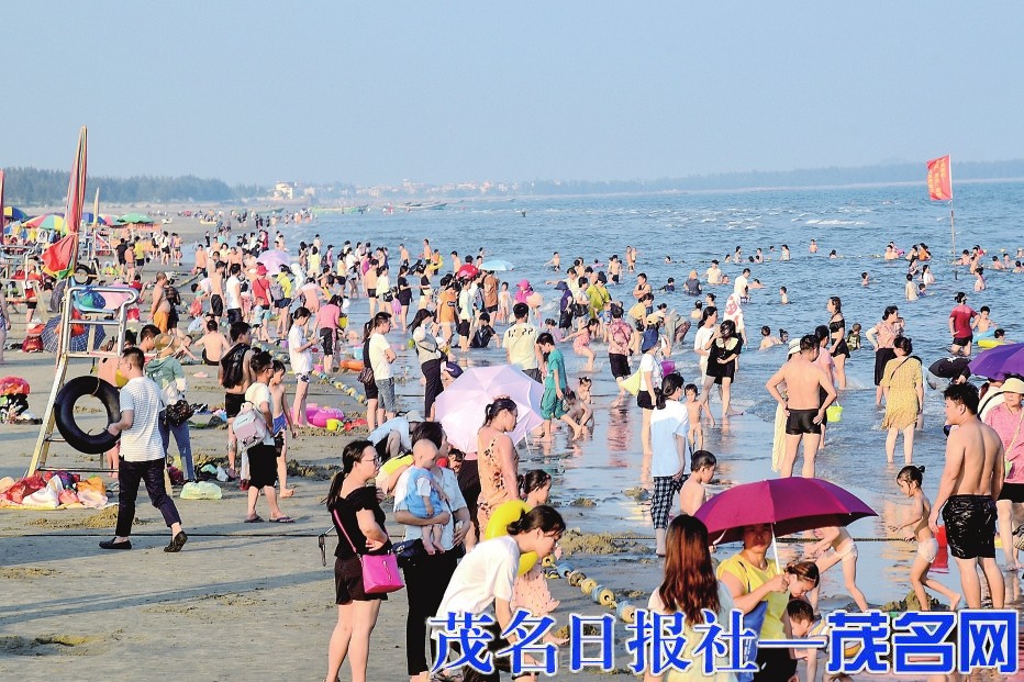 海滩客流量不断增多夏日炎炎,很多市民每年都会“打卡”各大海滩。28日下午6时许,茂名晚报记者来到中国第一滩,看到来游玩的市民络绎不绝,停车场基本停满小汽车,入口处游客排起几条长队。海滩上人头攒动,很多市民带着孩子出来消暑游玩,小朋友用随身携带的铲子、小水桶,专心致志蹲在沙滩上“盖房子”;有些游客三五成群围坐在沙滩帐篷下闲聊,感受海风拂面的清凉;欢呼声与海浪声融合,大人小孩尽情在海边戏水……场面甚为热闹。