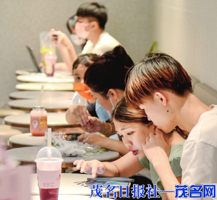 尽享舌尖上的“甜蜜一夏”夜幕降临,凉风习习,市区各大商业综合体灯火通明,一些市民走出家门,感受茂名魅力十足的夜生活。27日晚,南越1959文化创意街人流如潮,各大饮品店门前坐满了闲聊乘凉的年轻人,欢声笑语不断。炎热夏天,一杯甜丝丝、凉沁沁的冰饮成为很多市民的心头好,既饱口福,又祛暑热。茂名晚报记者留意到,好几家饮品店生意火爆,取餐桌上摆放着数十杯待取的冰饮,还有不少客人在店内等候。在各种饮品中,冰冻的柠檬茶和应季水果做成的水果茶更受市民欢迎。下班后的廖女士约了好朋友一起逛街,没逛一会就觉得暑热难耐,于是在饮品店点了两杯“西瓜椰椰”,“天气太热,只有凉意十足又解渴的水果茶能‘解救’我们,那种舒服劲儿真是透入心扉。”和同学在饮品店聚会的小邓称,想趁暑假和同学出来玩,但白天天气太热,因此选择晚上在饮品店见面,“冰激凌、椰子水、各式水果炒冰、柠檬茶等,这些都是我们近段时间经常买的。”