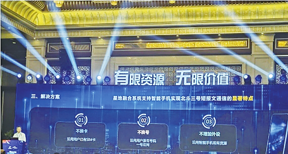 北斗三号短报文通信服务成果发布会现场。新华社记者胡喆摄