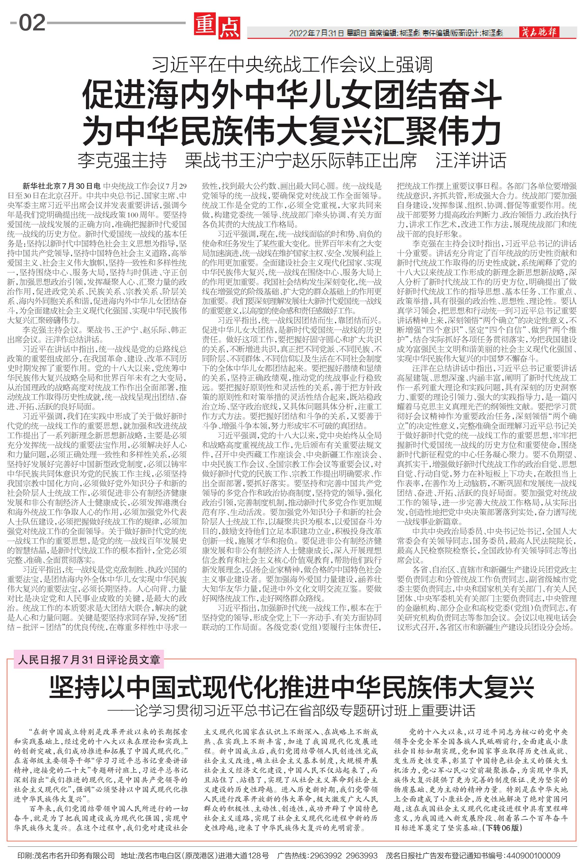 促进海内外中华儿女团结奋斗为中华民族伟大复兴汇聚伟力
