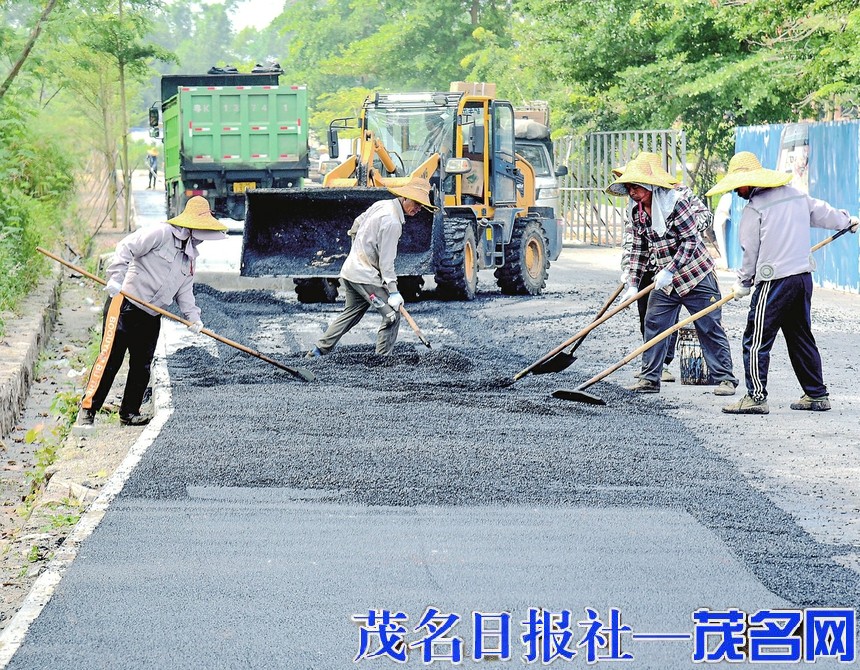 昨日,市区站北七路大田头村道路“黑底化”改造工程动工,施工人员冒着高温酷暑,摊铺沥青路面。该工程完成后,村民出行将更舒适便捷。
