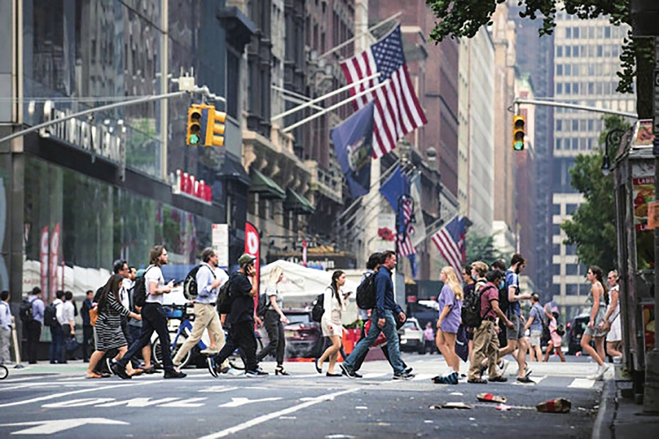 2021年7月20日,人们走在美国纽约街头。新华社记者王迎摄