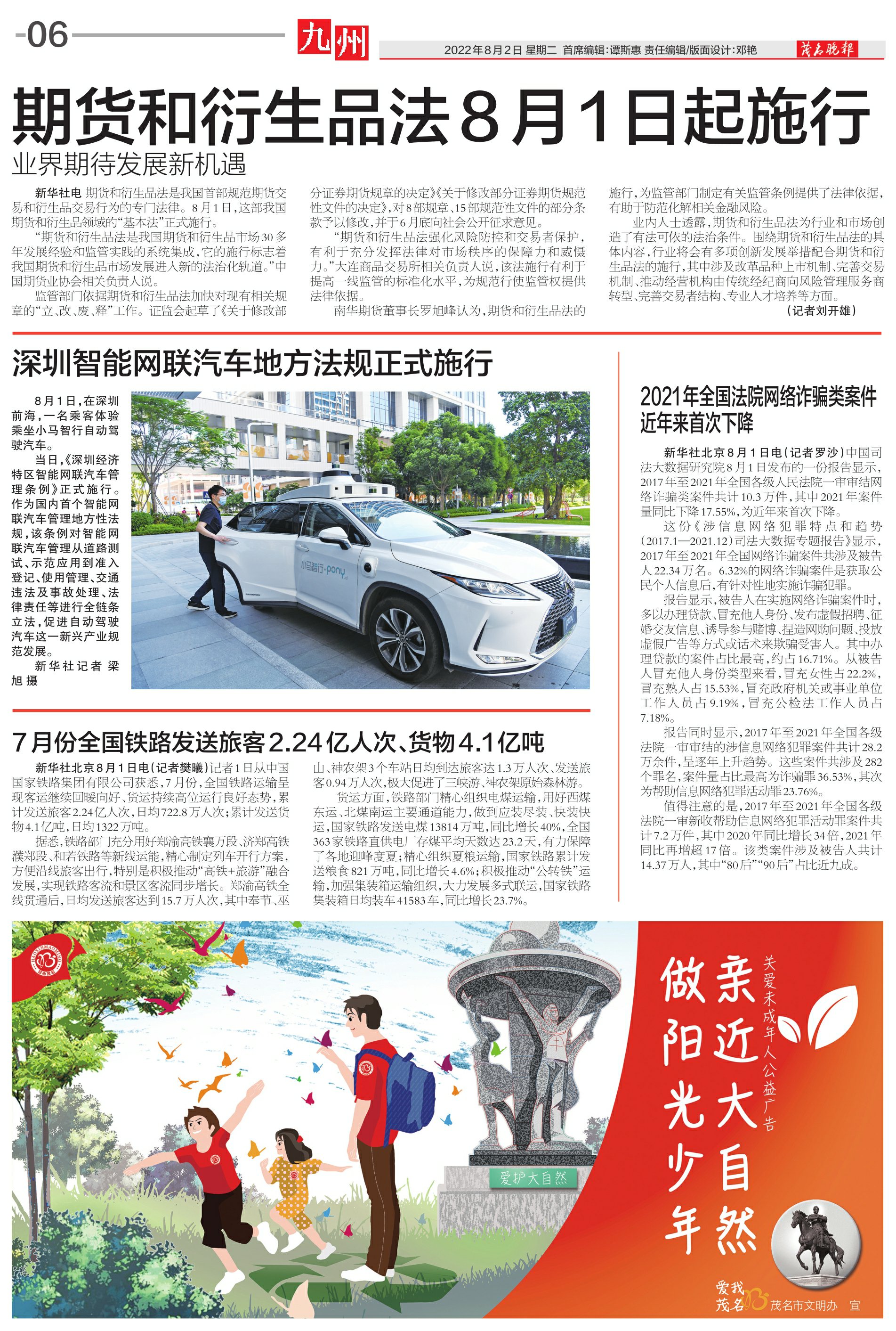 7月份全国铁路发送旅客2.24亿人次、货物4.1亿吨