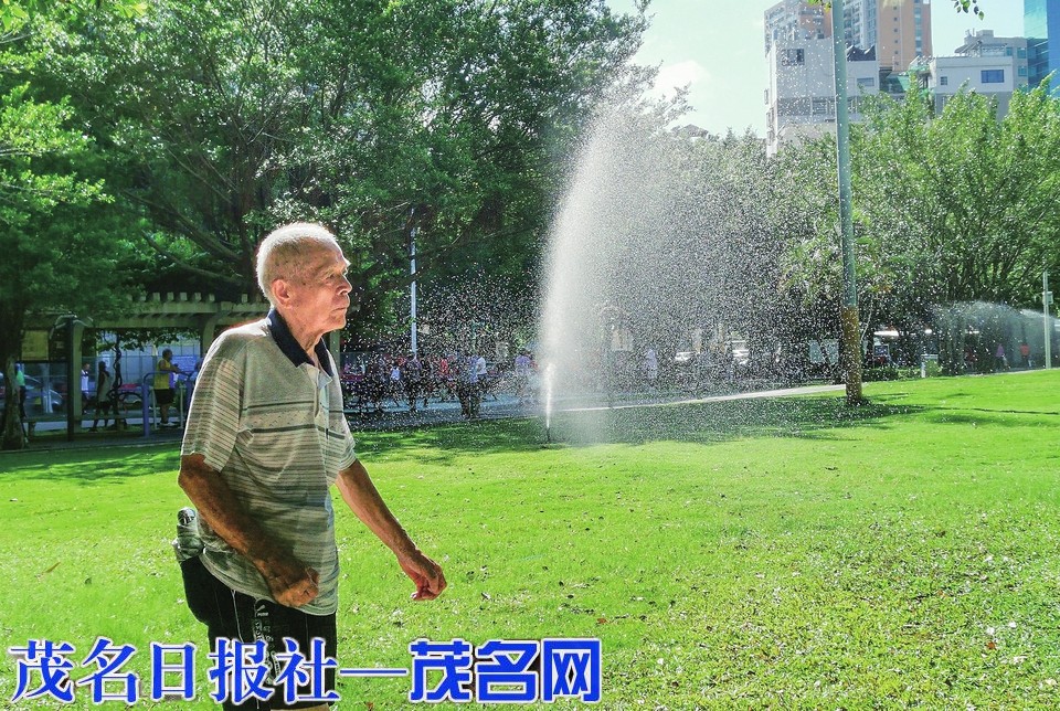 昨天,我市持续高温炎热天气,在市区福华公园,绿化带自动喷淋的水柱带来丝丝凉意。据气象部门消息,预计8月4日前后,受热带东风波动影响我市雷雨趋于明显,高温有望缓解。