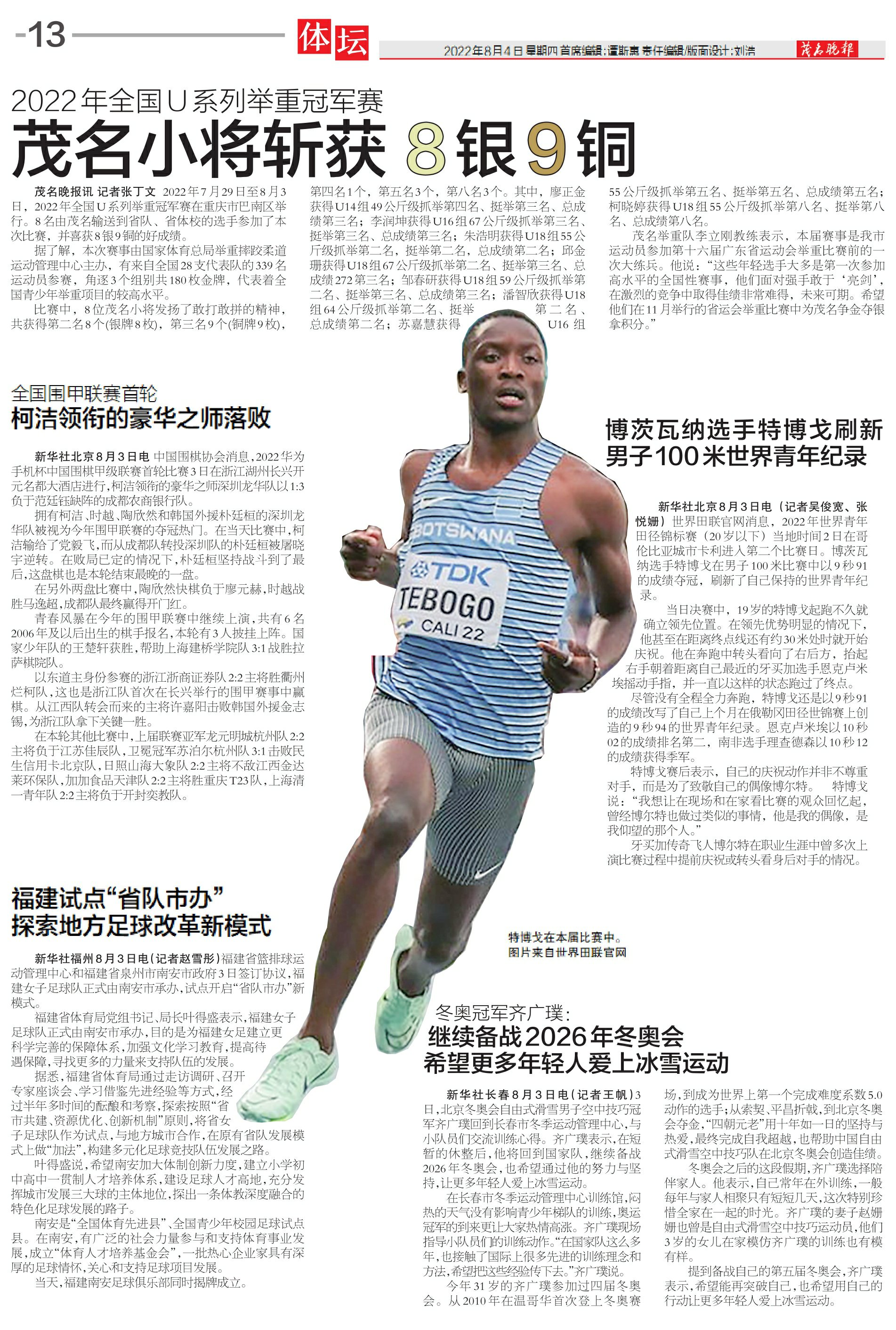 博茨瓦纳选手特博戈刷新男子100米世界青年纪录