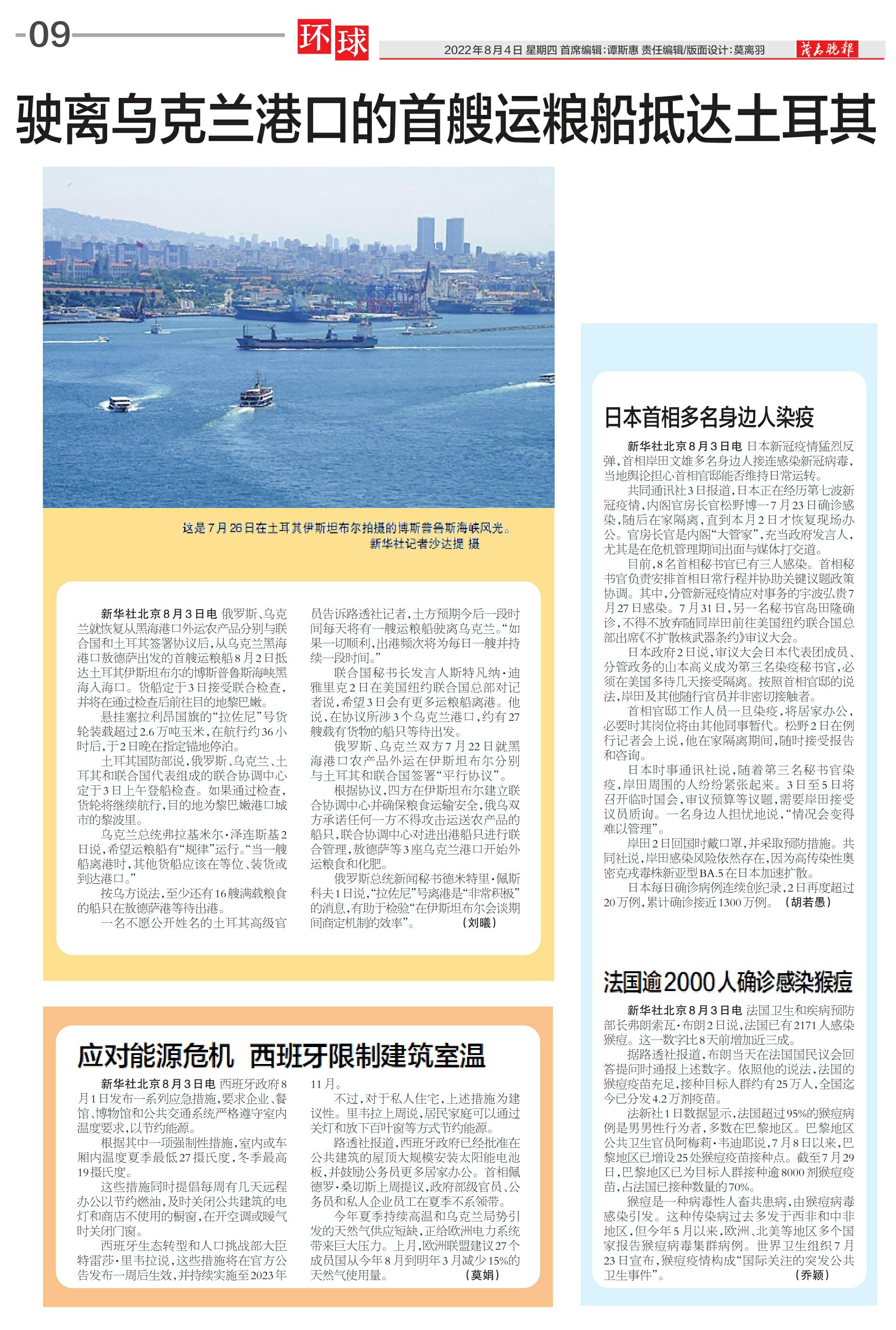 驶离乌克兰港口的首艘运粮船抵达土耳其