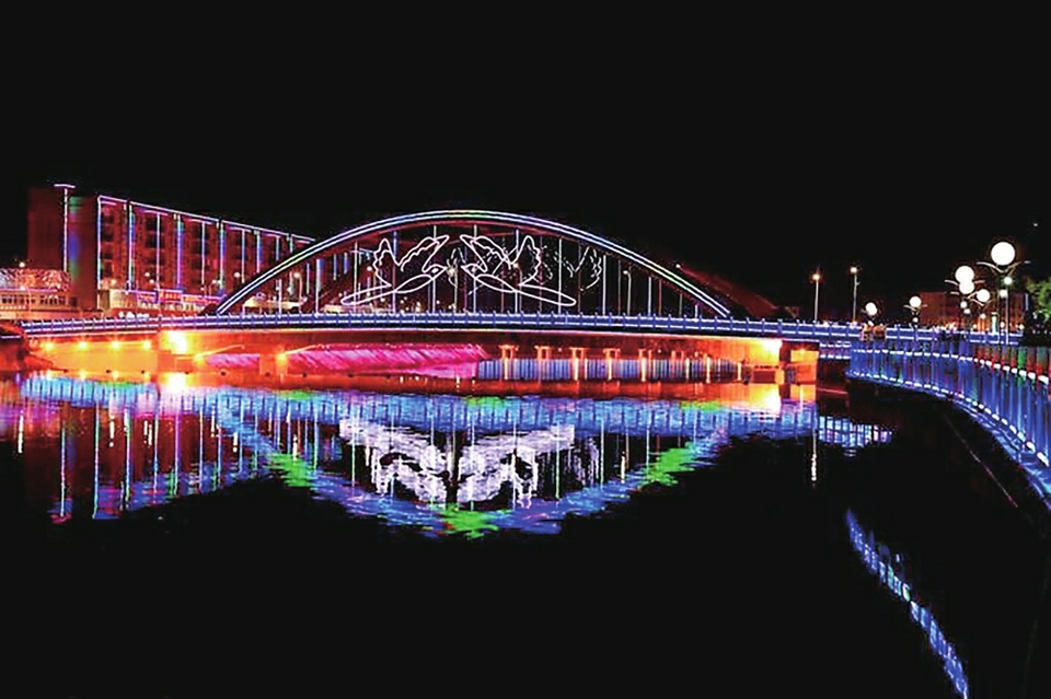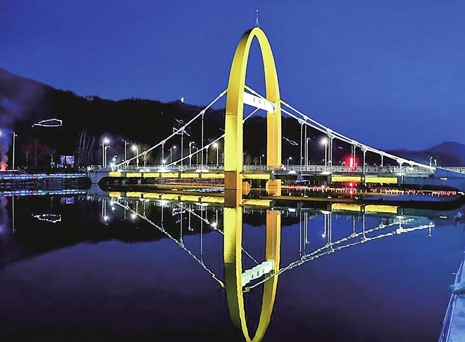 充溢着七夕元素的金梭桥对影成形。新华网发黄江平摄