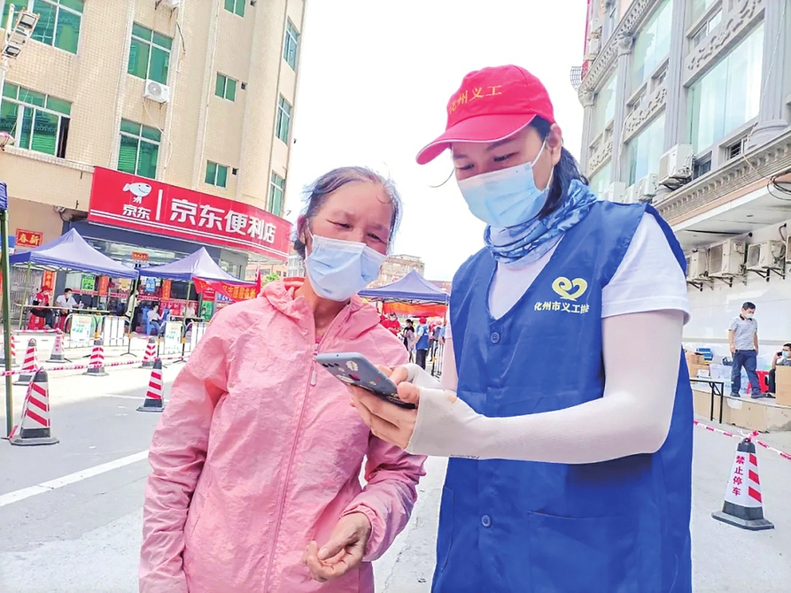 义工协助做好核酸检测工作。茂名晚报通讯员李侠标摄