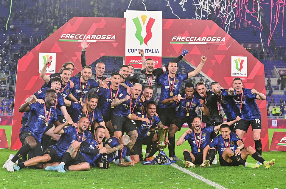 5月11日,国际米兰队通过加时赛以4比2战胜尤文图斯队,夺得冠军。新华社发(奥古斯托·卡萨索利摄)