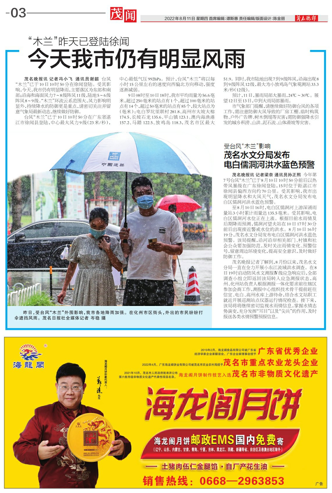 茂名水文分局发布电白儒洞河洪水蓝色预警