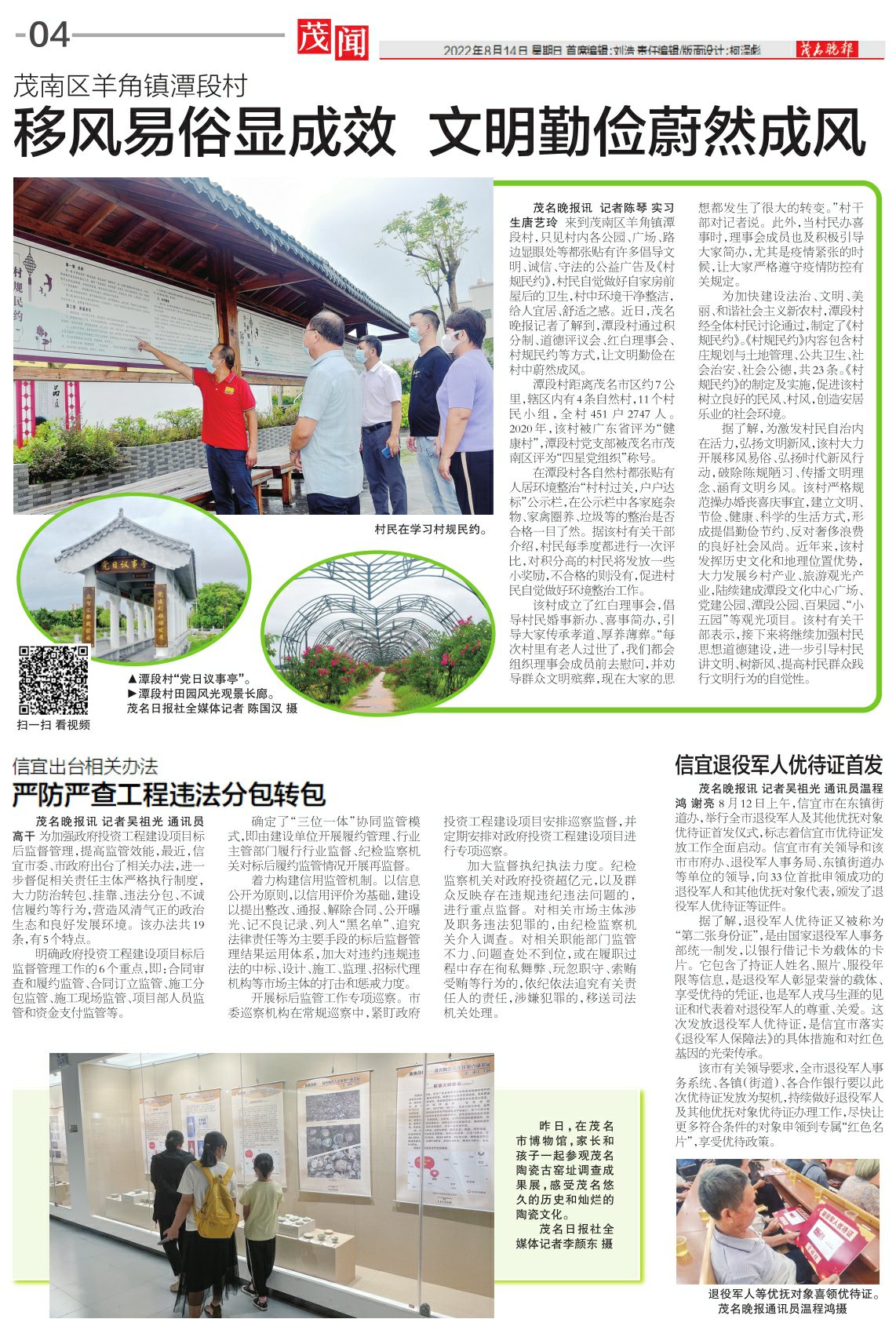 茂名晚报讯记者吴祖光通讯员温程鸿谢亮8月12日上午,信宜市在东镇街道办,举行全市退役军人及其他优抚对象优待证首发仪式,标志着信宜市优待证发放工作全面启动。信宜市有关领导和该市市府办、退役军人事务局、东镇街道办等单位的领导,向33位首批申领成功的退役军人和其他优抚对象代表,颁发了退役军人优待证等证件。