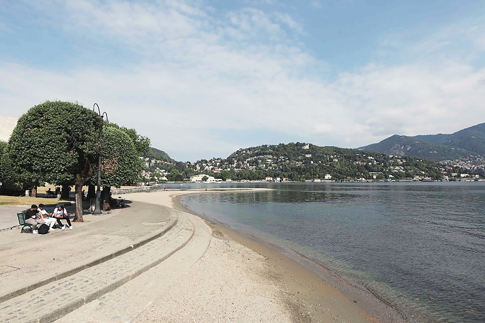 这是7月13日在意大利伦巴第大区科莫拍摄的遭遇干旱的科莫湖。新华社发