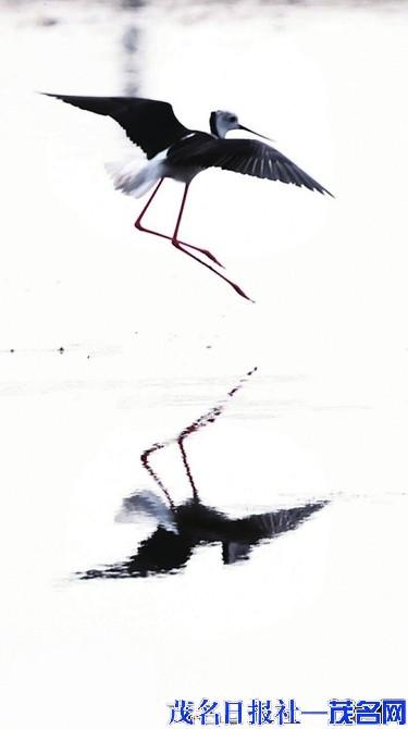 博贺湾滩涂是它的T台,一举,一动,或飞,或鸣,模特的魂灵时不时惊扰了博贺湾的好梦。它长着细尖的长嘴,穿着洁白的羽衣,背系黑色的披风,迈动鲜红而修长的双腿,在水边优雅踱步,宛如亭亭玉立的“超模美人”……