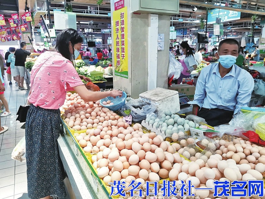 顾客在菜市场购买鸡蛋。茂名日报社全媒体记者 岑稳摄