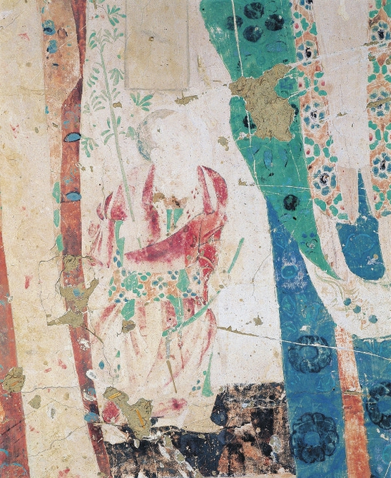 “郎骑竹马来,绕床弄青梅”出自李白的《长干行》,成语“青梅竹马”也由此而来。在莫高窟第9窟中,就有一幅古代儿童骑竹马的画面。在这幅供养人壁画中,身着花袍、足蹬平头履的童子,一手扶竹马、一手握树枝,似在赶马而行。