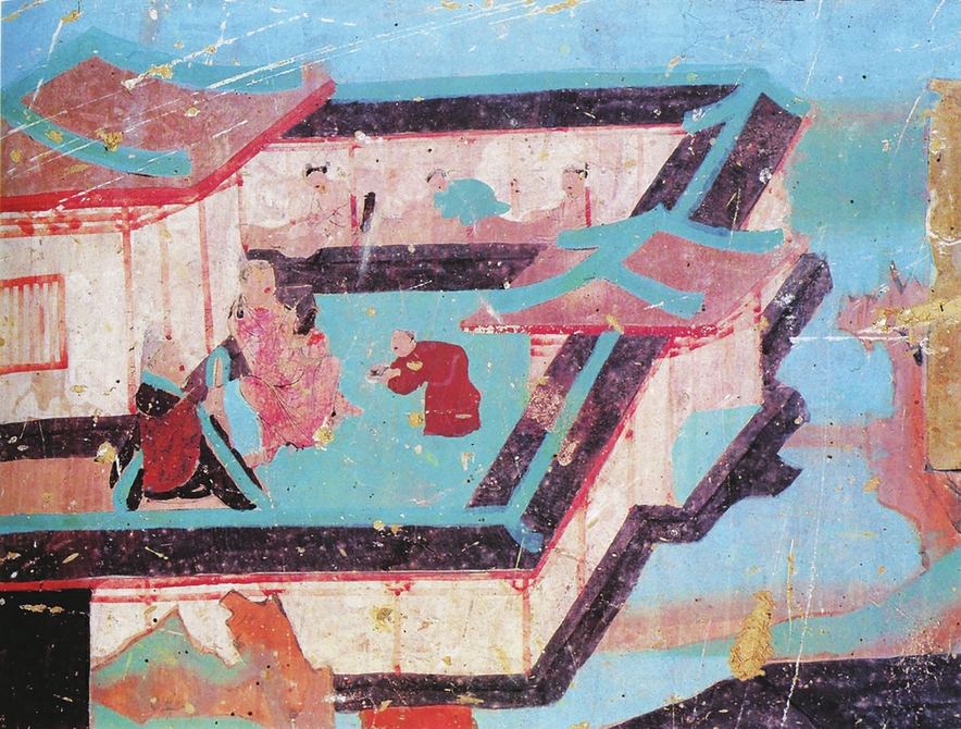 ▲这是莫高窟第9窟中的晚唐壁画,反映的是古代游戏“童子骑竹马”。(敦煌研究院供图)