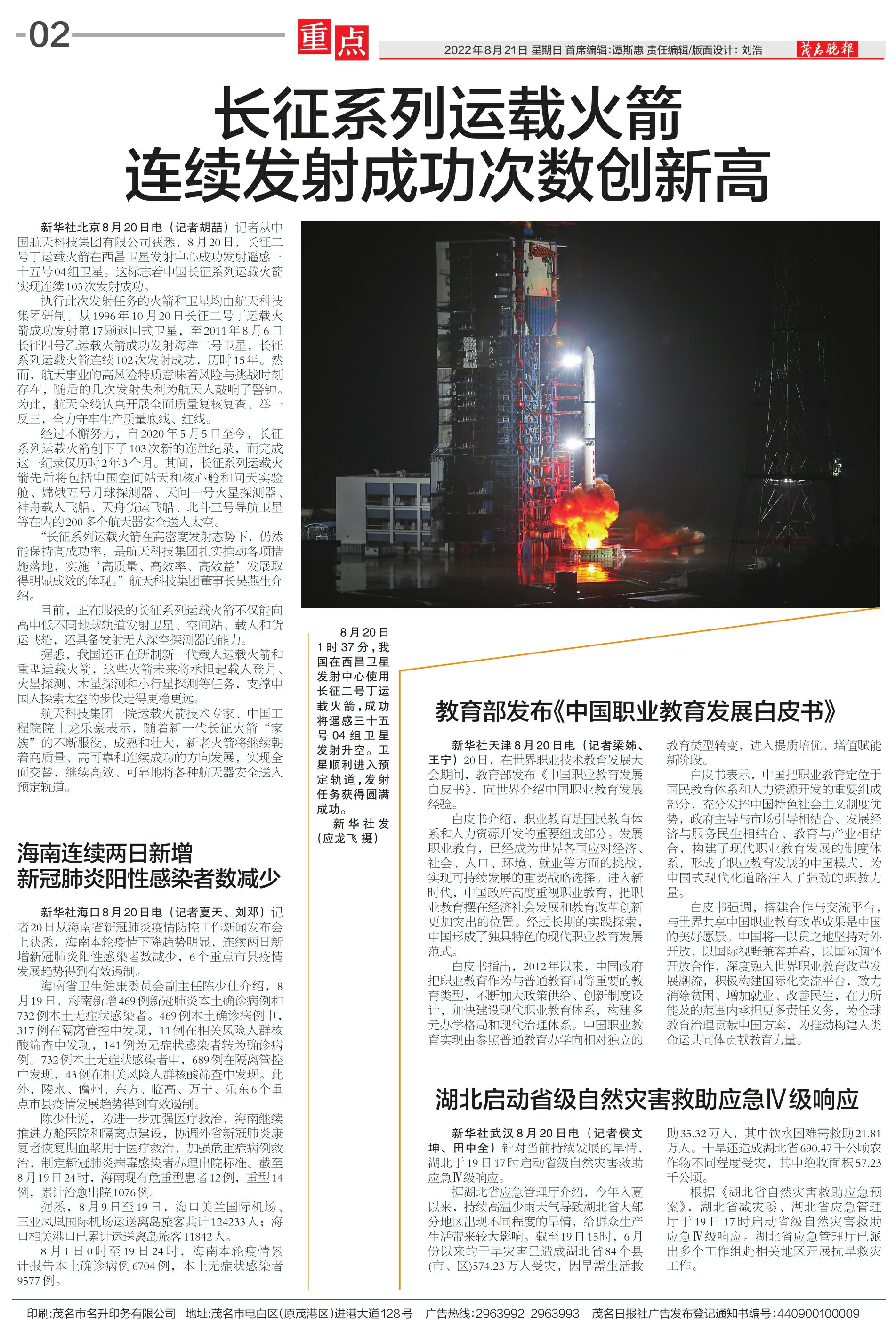 长征系列运载火箭连续发射成功次数创新高