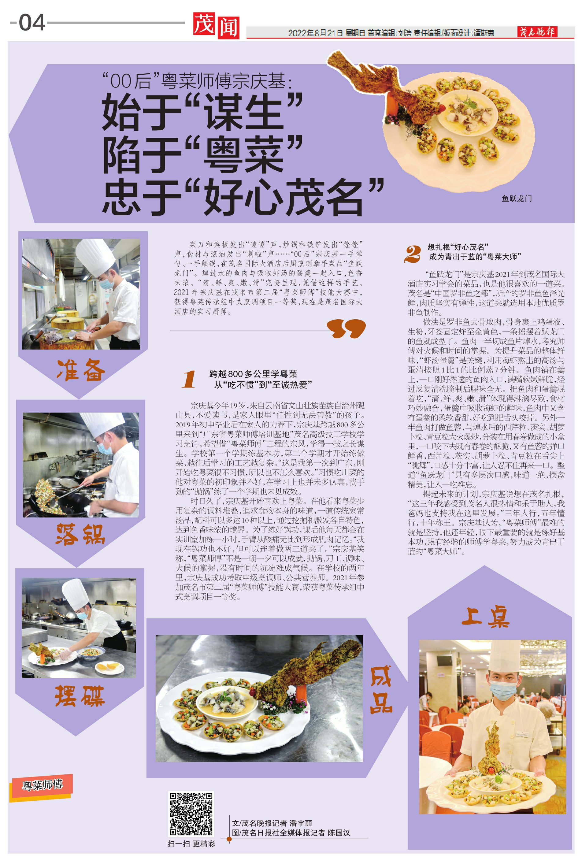 “00后”粤菜师傅宗庆基:始于“谋生”陷于“粤菜”忠于“好心茂名”