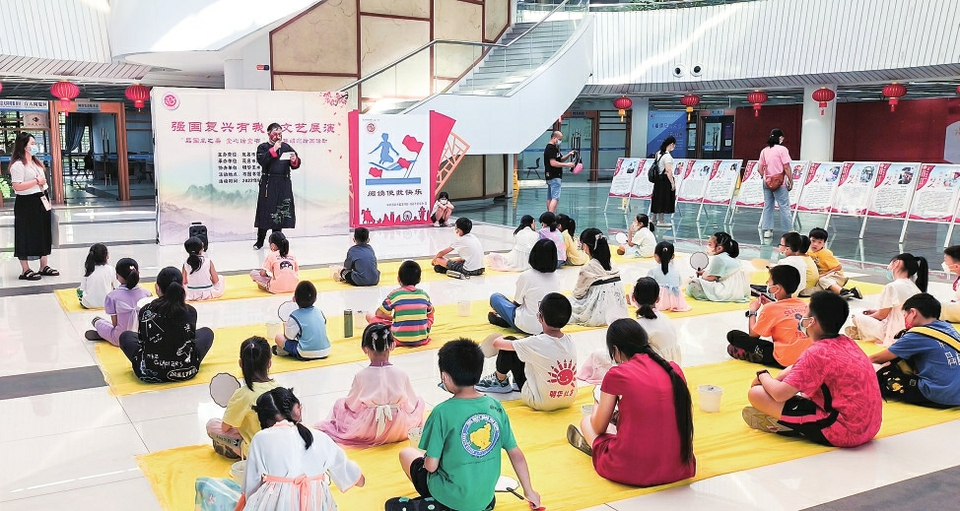 茂名晚报讯记者孙铭阳通讯员冯木维 8月19日,由茂名市文化广电旅游体育局主办,茂名市图书馆承办,明华美术协办的“品国风之美童心绘童书”青少年绢扇绘画活动在图书馆一楼大堂举行。